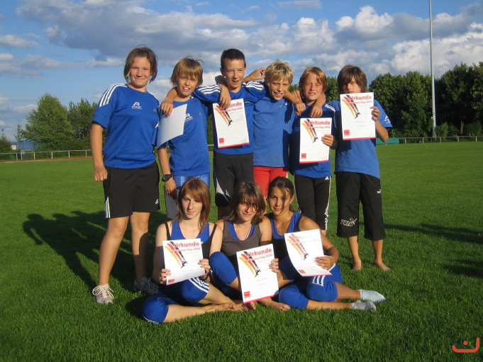 Beschreibung: Das Siegerteam der LG Voralb – v.l.n.r. hinten: Jessica Motzer, Tobias Sattler, Jonas Höfer, Jonas Rapp, Robin Schlenker, Lukas Scheurer; vorne: Celina Herr, Sara Schweizer, Lena Becher