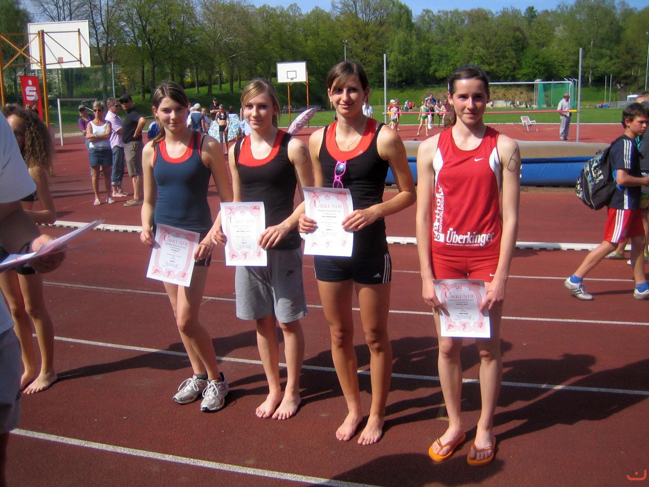Beschreibung: Die siegreiche 4-Kampf-Mannschaft der LG Filstal mit v.l. Pia Müller, Lena Fuchs, Sina Wieselmann, Rebecca Rapp (es fehlt Michaela Greiner)