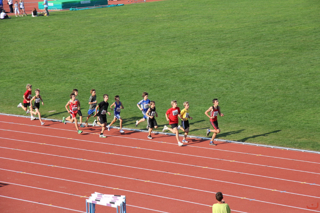 Beschreibung: Lukas Hahn führt das 1000m-Feld an und wird dann „durchgereicht“